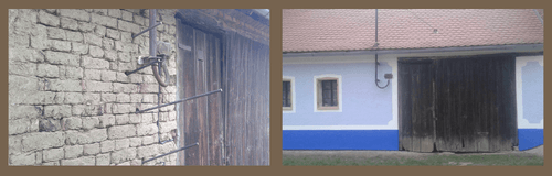 Po dokončení statického zajištění objektu následovala estetická část. Zdi s odstraněnou omítkou a proškrábnutými spárami bylo třeba řádně omést. Po ometení následoval hliněný špric a v zápětí hliněná stěrka se slaměnou řezankou. Zdi, kde zůstala původní omítka s odstraněným nátěrem jsme navlhčili a vyrovnali řídší hliněnou omítkou s řezankou.